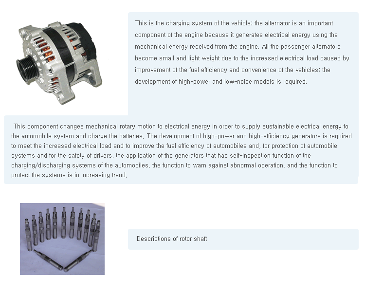Alternator components | Brake components | Newly developed components | Production Equipments | Inspection Equipments | Institute | History of Institute | Technology | News&Notice | Q&A |  INQUIRY